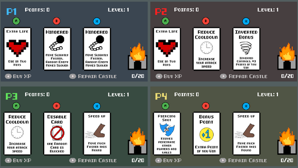 Made for the 2020 Global Game Jam, this 2-4 player party game has players fighting to be the first one to repair their castle. Play cards to assist you or hinder your opponents each round. Requires Xbox controllers for each player.